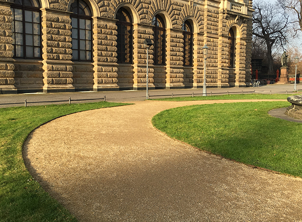 ◇ 素土鋪裝是以粘土、風化土等現(xiàn)地土壤(現(xiàn)場土壤)為主要材料,加入特殊硬化劑的混合材料進行的道路鋪裝。道路保有土壤原本的色彩和景觀效果,但雨天,道路不會積水,不會泥濘,行走舒適。